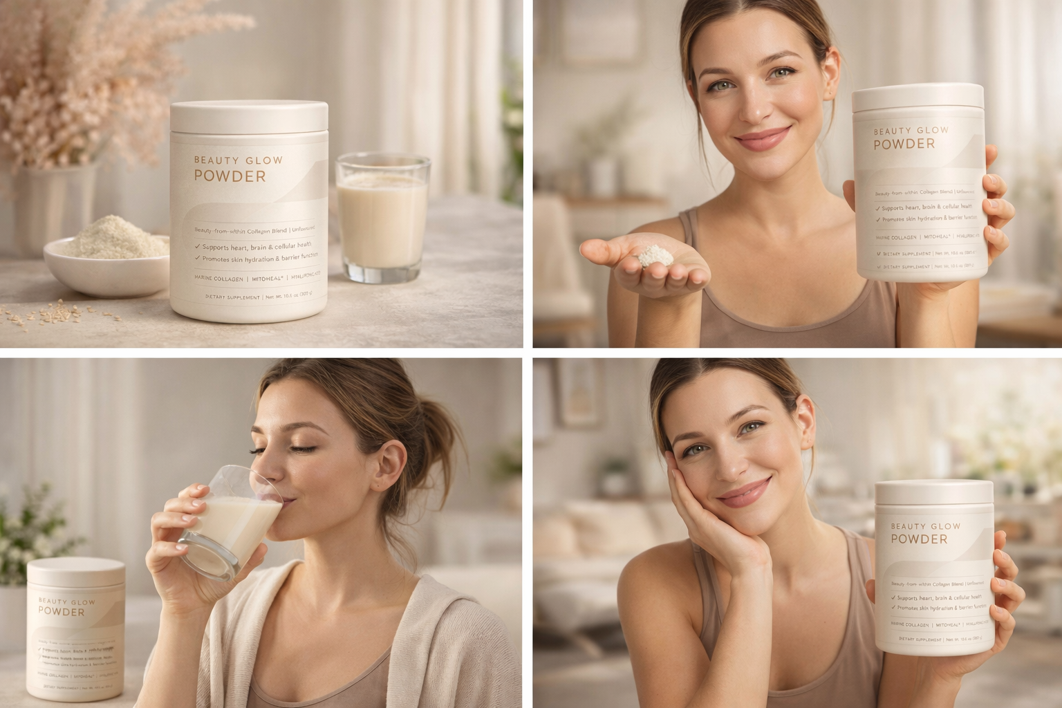 A premium beauty-from-within powder designed for brands looking to launch a daily skin wellness product with strong consumer appeal. Beauty Glow Powder is formulated to support radiant skin, improved firmness, and everyday glow through a blend of targeted beauty ingredients that work from within.